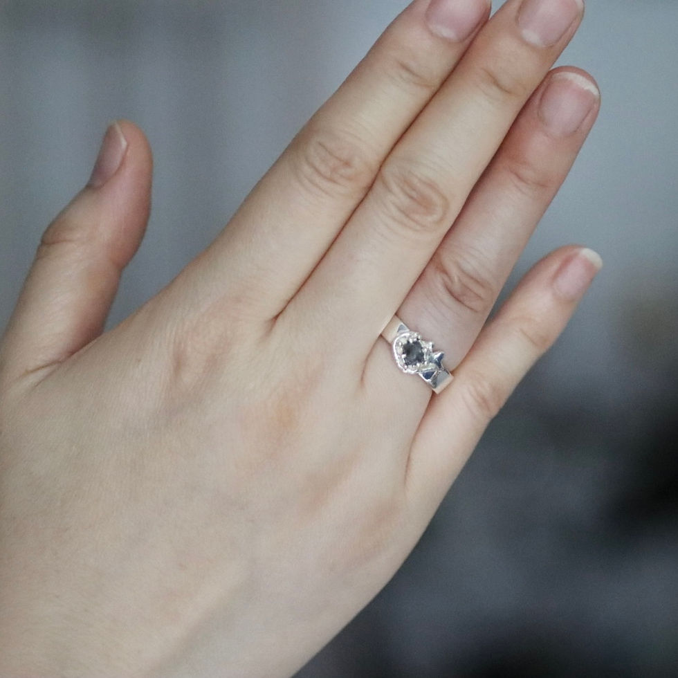 デンドリティッククォーツに乗る黒猫 シルバーリング